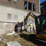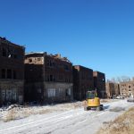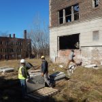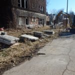 The greenway’s paths are being paved with materials salvaged from several former apartment buildings in East Cleveland—the Burnette Apartments at 15800 Euclid Avenue and six apartment buildings on Chapman Avenue built in the ’20s featuring beautiful, cut sandstone veneers. Once vibrant homes, these structures fell into disrepair and foreclosure over the years. Eventually, they ended up in the hands of the city and the Land Bank and were demolished.